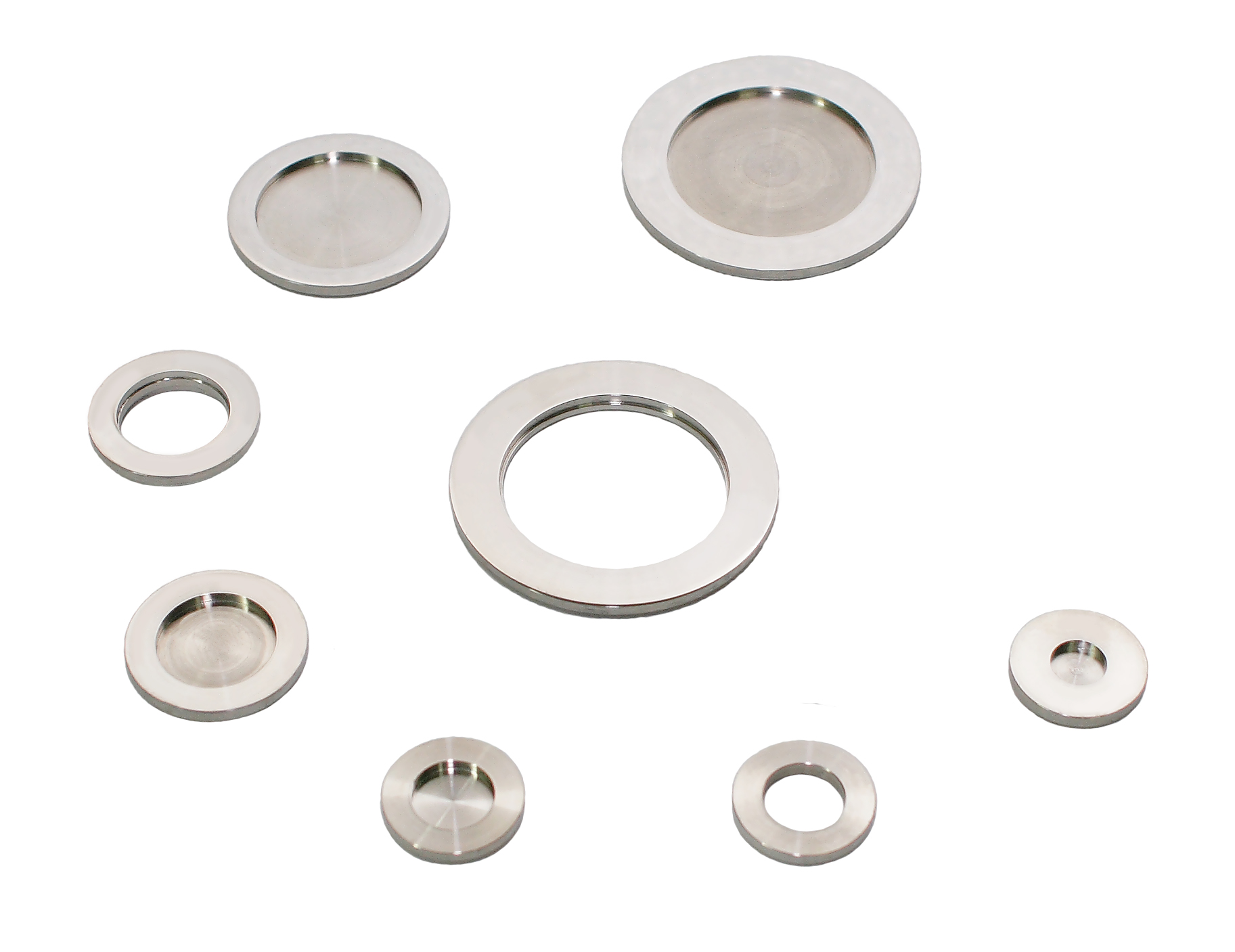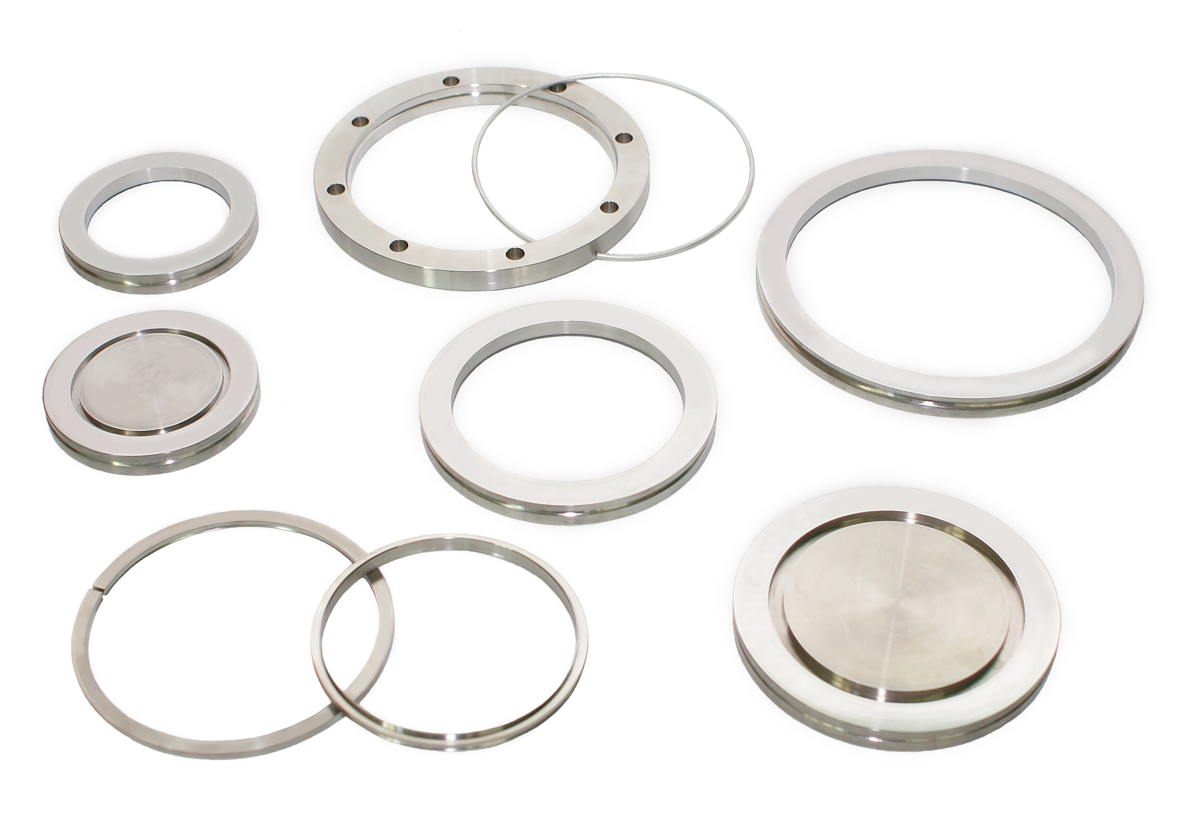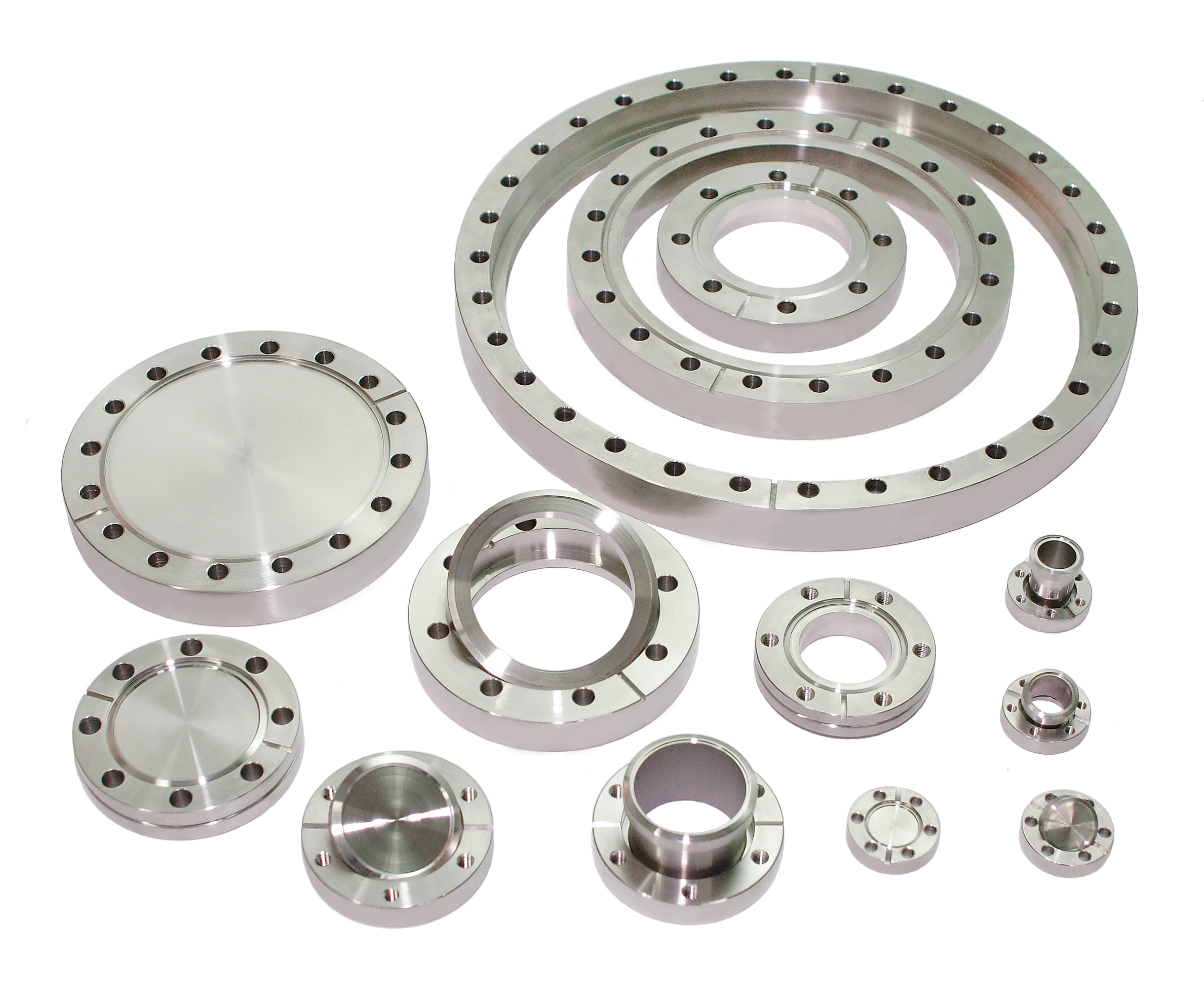 АО "КБ РЭ" изготавливает фланцы и патрубки стандартов CF, ISO, KF всех типоразмеров из нержавеющей стали и алюминиевых сплавов, а также уплотнительные элементы и нестандартные фланцы по чертежам Заказчика: