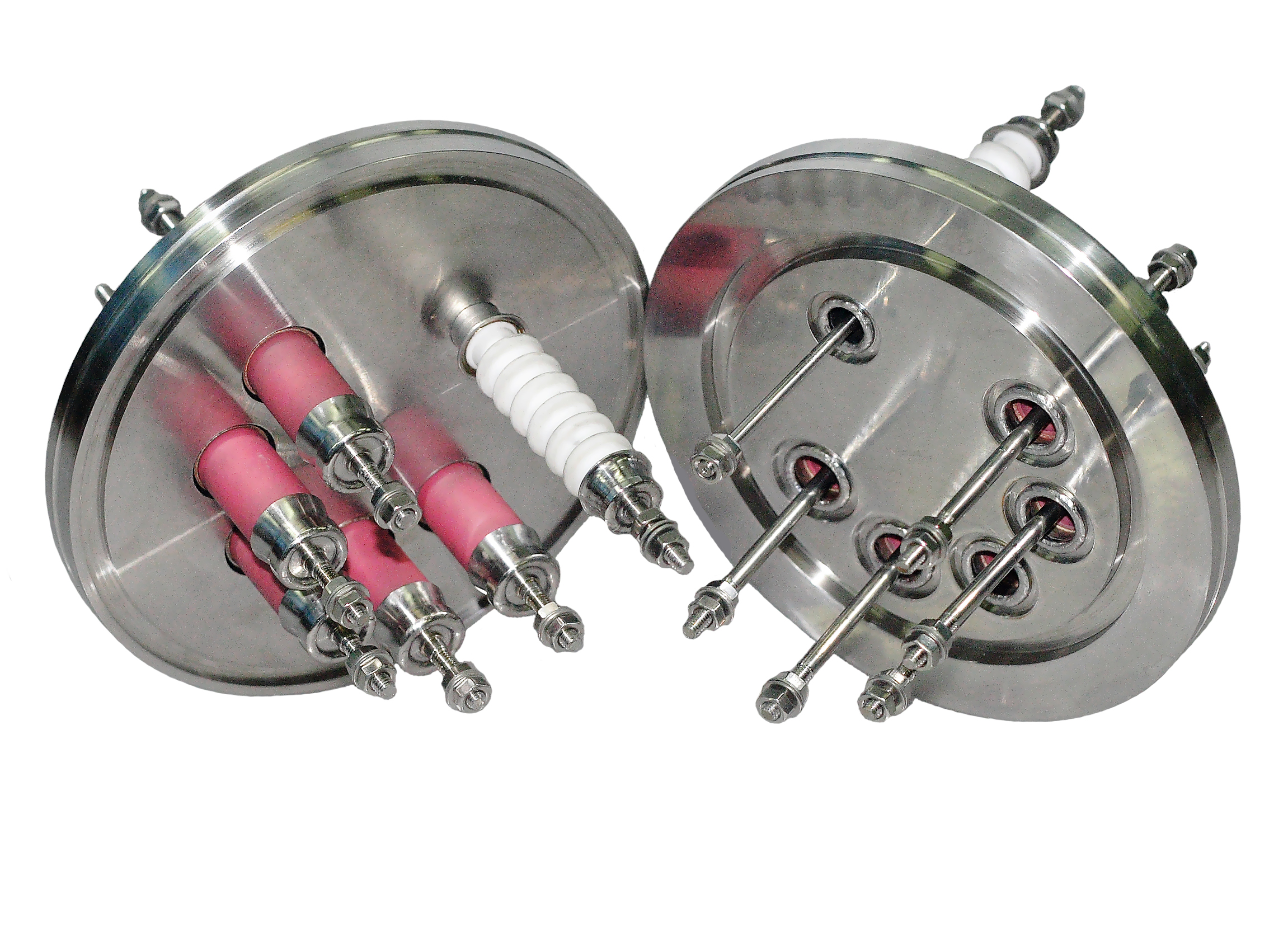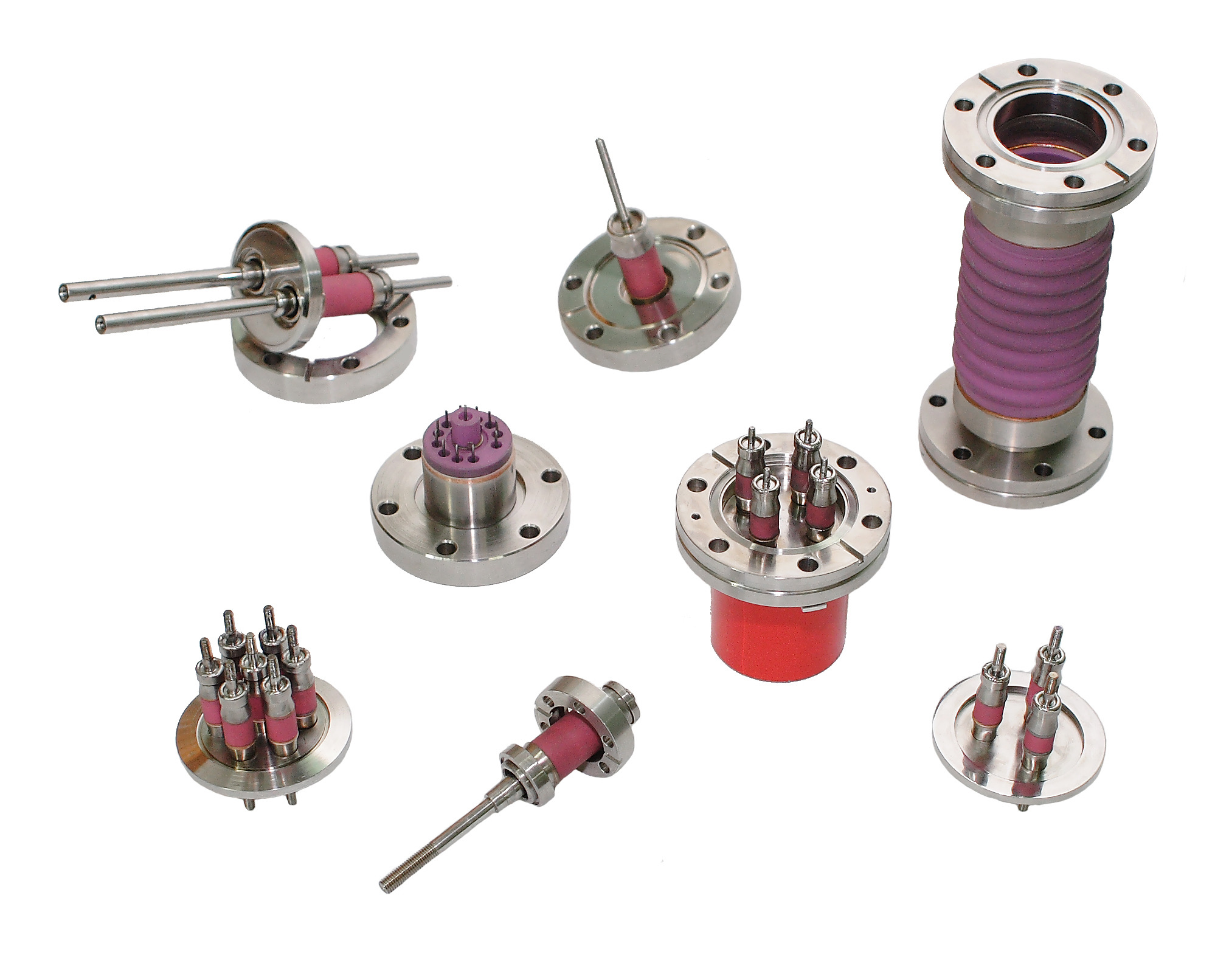 АО "КБ РЭ" изготавливает электрические вводы в вакуум на фланцах CF, ISO, KF и других типов по чертежам и эскизам Заказчика. В том числе: мультипиновые вводы, высоковольтные вводы, токовые вводы, вводы с водяным охлаждением и пр.